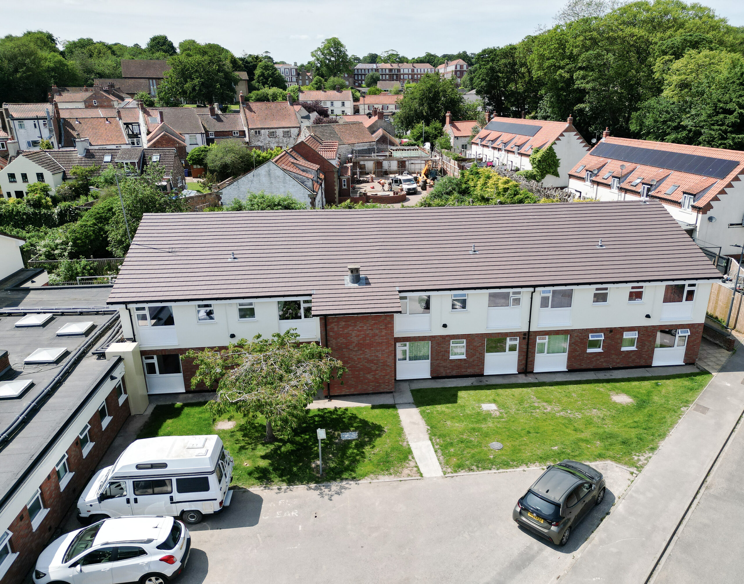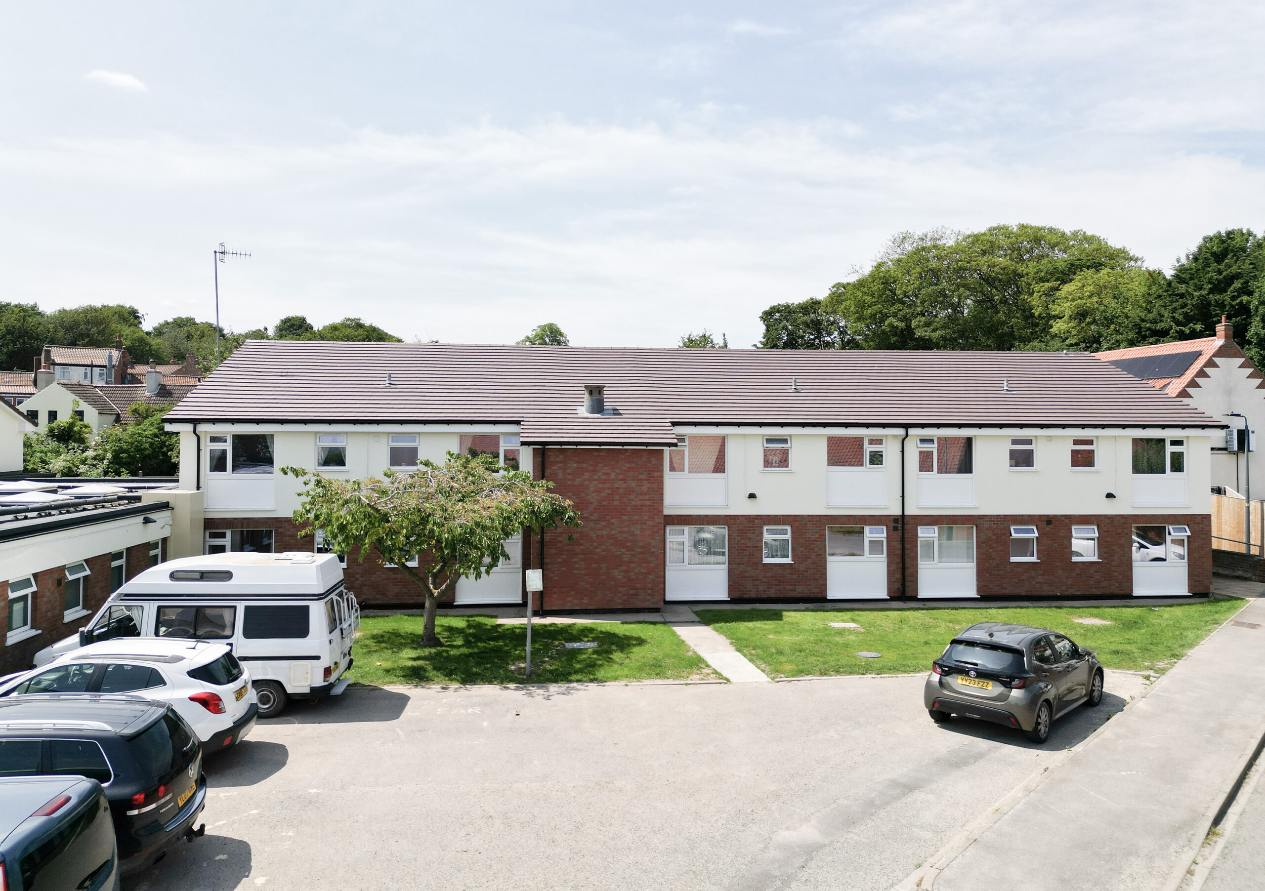 During the 2024/25 financial year, Beyond Housing successfully completed a significant retrofit project to decarbonise Hungate Court flats in North Yorkshire. Delivered in partnership with E.ON Green Funding Solutions and supported by £650,000 from the Social Housing Decarbonisation Fund (SHDF), this £2.2 million project has transformed one of Beyond Housing’s most inefficient buildings into much-improved warm and sustainable homes.