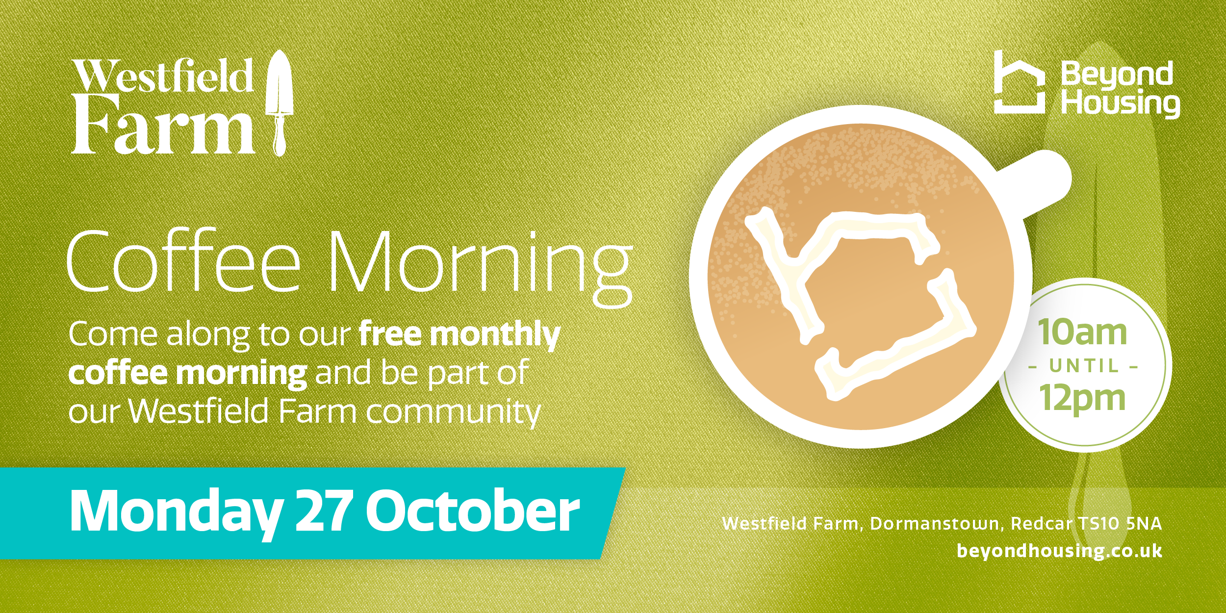 Come along to our free monthly coffee mornings at Westfield Farm between 10am – 12pm and be a part of our Westfield Farm community
